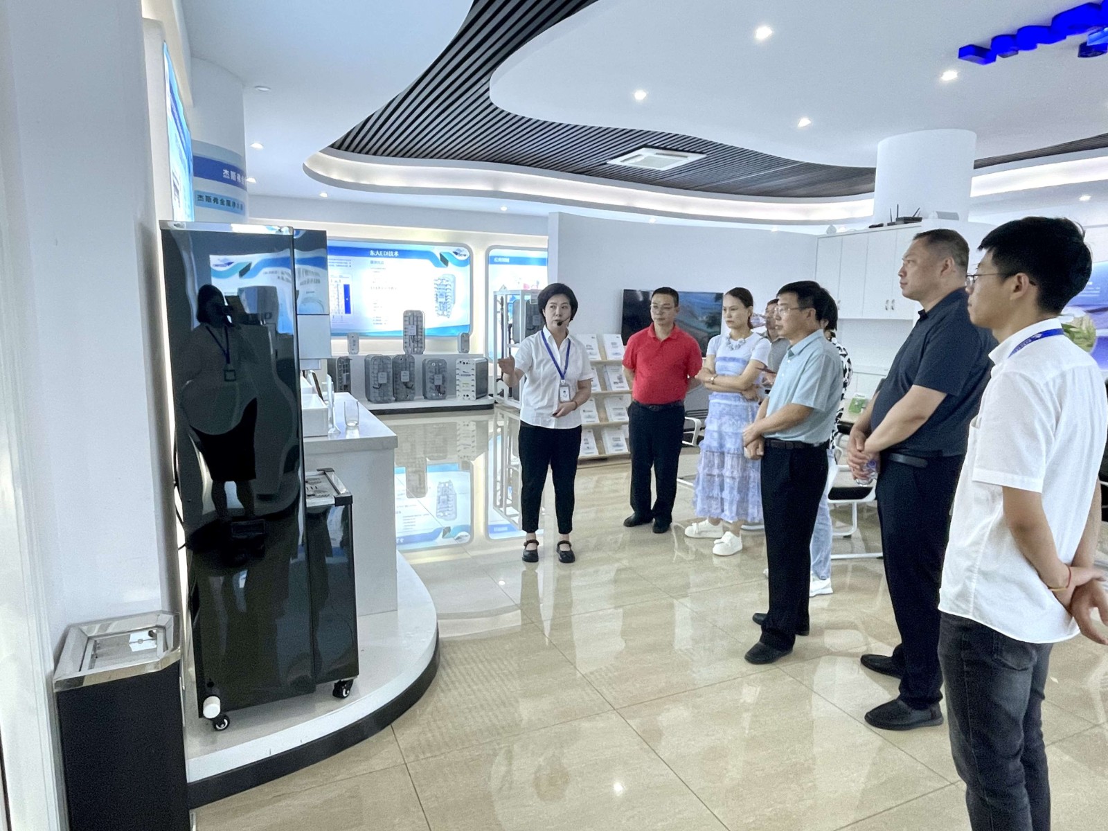公司展廳,總經(jīng)理錢建斌、副總經(jīng)理金王勇為焦瑞河主席一行詳細(xì)介紹了公司成立以來立足諸暨市為發(fā)展戰(zhàn)略支點(diǎn),進(jìn)行綠色環(huán)保建設(shè),推動(dòng)各地區(qū)綠色低碳高質(zhì)量發(fā)展中所做出的突出貢獻(xiàn)和企業(yè)發(fā)展成果。